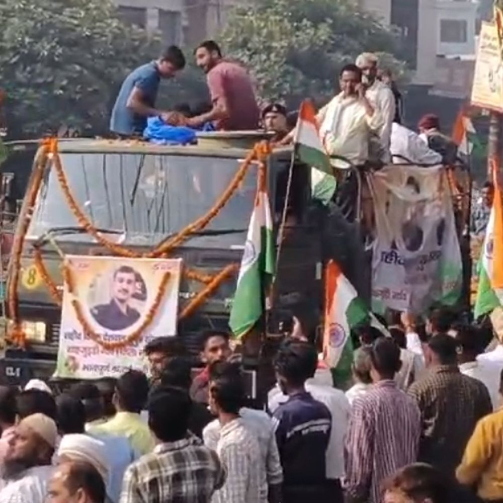 शनिवार को जनपद के शाहपुर क्षेत्र के गांव शाहजुद्दी निवासी सेवा के जवान विवेक देशवाल जम्मू कश्मीर में शहीद हो गए थे। विवेक देशवाल के बलिदान की जानकारी सेवा के अधिकारियों ने उनके परिजनों को दी थी। सोमवार सुबह विवेक देशवाल का पार्थिव शरीर जम्मू कश्मीर से दिल्ली और दिल्ली से मुजफ्फरनगर लाया गया।
