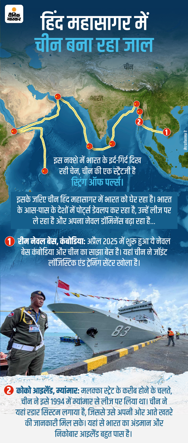 India China Indian Ocean Dominance Strategy; Naval Base | Trade Economy | मंडे मेगा स्टोरी-चीन ने भारत को 9 जगहों से घेरा: भारत भी उल्टा जाल बुन रहा; हिंद महासागर में मची वर्चस्व की जंग में कौन आगे