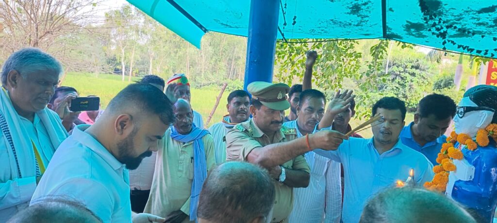 रामनगर बाराबंकी। मानसिक रूप से विक्षिप्त व्यक्ति ने भीमराव अंबेडकर की प्रतिमा को खंडित कर दिया। घटना की सूचना पर पहुंची पुलिस व राजस्व टीम ने नयी मूर्ति स्थापित करवा मामले को शांत कराया। प्राप्त विवरण के अनुसार थाना रामनगर अंतर्गत रानी बाजार चौराहे पर राष्ट्रीय राजमार्ग के किनारे बने अंबेडकर पार्क में स्थापित प्रतिमा को बुधवार की दोपहर कई दिन से आसपास भटक रहे एक विक्षिप्त व्यक्ति ने वजनी पत्थर से भीमराव अंबेडकर की प्रतिमा को खंडित कर दिया। मौके पर मौजूद लोगों द्वारा इसकी सूचना पुलिस व तहसील प्रशासन को दी गयी। नायब तहसीलदार विजय प्रकाश तिवारी थाना प्रभारी निरीक्षक अनिल कुमार पांडेय इंस्पेक्टर सुभाष यादव भारी पुलिस बल के साथ मौके पर पहुंचे सूझबूझ का परिचय देकर मूर्ति तोड़ने वाले व्यक्ति को हिरासत में ले लिया इसके बाद नयी मूर्ति मंगवा कर पुनः उसी स्थान पर स्थापित करवा कर पूजन अर्चन के बाद मिठाई बाटकर मामला शांत कराया।इस मौके पर अनिल शुक्ला बीएसपी पूर्व जिलाध्यक्ष परसुराम गौतम विधानसभा प्रभारी अजय गौतम बराती लाल रमेश रंजन पूर्व प्रधान पुत्ती लाल, अरुण धीमान लेखपाल विनीत कुमार उपनिरीक्षक उमेश यादव कांस्टेबल विजय भान सहित भारी संख्या में लोग मौजूद रहे।