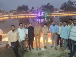 तहसील रामनगर का सुप्रसिद्ध श्री लोधेश्वर धाम मंदिर का शिव अभरण सरोवर 5100 दीपों से जगमगाया