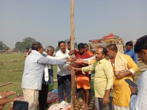 रामनगर बाराबंकी।महादेवा महोत्सव को भव्य रूप देने के लिए मेला मैदान में 40 फिट ऊंची अमरनाथ की गुफा बनाई जाएगी। जिसका निर्माण कार्य लखनऊ की टीम के द्वारा शुरू कर दिया गया। 17 से 23 नवंबर तक होने वाले सप्तरंगी महोत्सव में अमरनाथ की गुफा लोगों के आकर्षण का केंद्र बनेगी। शुक्रवार को पूर्व ब्लाक प्रमुख प्रतिनिधि बृजपाल सिंह ज्ञानू व नायब तहसीलदार विजय प्रकाश तिवारी ने वैदिक मंत्रोउच्चारण के बीच भूमि पूजन किया। पंडित अनिल शास्त्री द्वारा कराए गए पूजा अर्चना के बाद बल्ली में कलावा बांधकर गुफा की नींव रखी गयी। पूर्व प्रतिनिधि ज्ञानू सिंह के सानिध्य में डॉ भगौती सिंह क्षेत्रीय दुर्गा जागरण समिति रानीगंज की देखरेख में लखनऊ की टीम के द्वारा अमरनाथ की गुफा बनाई जाएगी। 17 नवंबर से होने वाले अगहनी महोत्सव में भोजपुरी अभिनेत्री अक्षरा भोजपुरी गायक समर सिंह, शिल्पी राज कवियत्री अनामिका सिंह अम्बर सूफी सगीत गजल गायक कुमार सत्यम, शांतनु महाराज सहित आदि नामचीन कलाकारों से संपर्क साधा जा रहा है। सात दिवसीय महोत्सव को भव्यता प्रदान करने के लिए कपड़े खाद्य सामग्री सहित तमाम इंस्टाल लगाए जाएंगे तथा वॉलीबॉल कबड्डी दंगल प्रतियोगिता खेलप्रेमियों का मन मोहेगी। बच्चो एवं युवाओं के मनोरंजन के लिए छोटे बड़े झूले लगाए जाएंगे। जिलाधिकारी शशांक कुमार त्रिपाठी के निर्देशन में संयुक्त मजिस्ट्रेट गुंजिता अग्रवाल तहसीलदार विपुल कुमार सिंह नायब तहसीलदार विजय प्रकाश तिवारी महोत्सव की तैयारीयों में जुटे हैं।