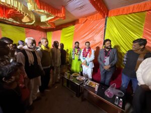 रामनगर बाराबंकी। सिलौटा गांव में बने अति प्राचीन मंदिर बाबा बेनी सागर के जीर्णोद्धार बाद हवन पूजन के साथ भंडारे का आयोजन हुआ । मुख्य अतिथि समाज सेवी भाजपा नेता गौरी कांत दीक्षित ने पहुंच कर मंदिर में माथा टेका। ग्रामीणों ने उनका माल्यार्पण कर स्वागत किया। सिलौटा का यह मंदिर अति प्राचीन है जो जर्जर हो गया था। श्रद्धालुओं व ग्रामीणों के सहयोग से इसकी मरम्मत कराकर जीर्णोद्धार किया गया है। मंदिर के अंदर प्रसिद्ध संत सिद्ध पुरुष बाबा बेनी सागर की समाधि है जहां लोग आकर माथा टेकते हैं।शनिवार को जीर्णोद्धार कार्य पूर्ण होने पर पंडित विष्णु कुमार शास्त्री द्वारा हवन पूजन कराया गया।इसके बाद भंडारे का आयोजन हुआ जिसमें श्रद्धालुओं ने प्रसाद ग्रहण किया। श्री दीक्षित ने इस अवसर पर कहा कि बाबा बेनी सागर अलौकिक संत थे जिन्होंने प्रारंभ में लोधेश्वर महादेवा का मंदिर बनवाया था।इनके बताए मार्गों पर चलकर सभी लोग अपना जीवन सफल बनाएं। इस अवसर पर प्रहलाद सिंह,अनूप पांडेय,आदित्य तिवारी,राम नाथ गुप्ता,अमर सिंह,उमेश राजपूत आदि तमाम श्रद्धालु मौजूद रहे। श्री दीक्षित ने कार्यकर्ताओं को अंग वस्त्र देकर सम्मान भी किया। इस कार्यक्रम के बाद श्री दीक्षित ने ग्राम फरही, भैरमपुर, भिटौली, रामनगर के मोहल्ला धमेडी एक,व चुरौलिया में हो रही श्री मद भागवत कथा में जाकर आचार्य सहित पूरी टीम व आयोजकों का अंग वस्त्रम देकर स्वागत किया।