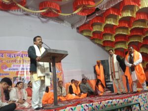 रामनगर, बाराबंकी।ग्राम किन्हौली स्थित सहाय कॉन्वेंट विद्यालय के तत्वावधान में शनिवार की शाम विराट कवि सम्मेलन का भव्य आयोजन किया गया। कार्यक्रम का निर्देशन शेष कुमार मिश्रा ने किया, जबकि संयोजन की जिम्मेदारी विशाल मिश्रा ने संभाली। वरिष्ठ कवि जगन्नाथ निर्दोष ने कवि सम्मेलन की अध्यक्षता की तथा रायबरेली से पधारे कवि नीरज पांडेय ने कुशल संचालन किया।कार्यक्रम के मुख्य अतिथि गौरीकांत दीक्षित एवं विशिष्ट अतिथि जिला कार्यवाह सुधीर तिवारी रहे। अतिथियों ने मां सरस्वती के चित्र पर माल्यार्पण व दीप प्रज्वलन कर कार्यक्रम का शुभारंभ किया। इस अवसर पर मुख्य अतिथि द्वारा कवियों को सम्मानित किया गया तथा सैकड़ों जरूरतमंदों को कंबल वितरित किए गए।कवि सम्मेलन की शुरुआत गोंडा से पधारी कवयित्री नीता सिंह नवल की सरस्वती वंदना “मां मेरे सिर तुम्हारा वरद हस्त हो…” से हुई। इसके पश्चात कवि गौरव गौरवान्वित ने “राम की धरा पे खड़े राम का प्रमाण मांगे…” सुनाकर वातावरण को ओजपूर्ण बना दिया। बाराबंकी की कवयित्री ईशा मिश्रा ने “जताया जो दर्द तो कायर कहलायेंगे…” सुनाकर श्रोताओं से खूब तालियां बटोरीं।कवि रजत कुमार मिश्रा की रचना “राम का नाम जिनके अधर पर नहीं…” ने वातावरण को राममय कर दिया, वहीं कवि मनोज मिश्रा की पंक्तियां “पहिले बुला के बाद में दुतकारिये नहीं…” पर श्रोता झूम उठे। वरिष्ठ कवि हरिहरदत्त पांडेय, कवयित्री कल्पना तिवारी दिव्या, वरिष्ठ कवि राम किशोर तिवारी एवं कवि सीताकांत स्वयंभू ने भी अपनी प्रभावशाली रचनाओं से श्रोताओं को भाव-विभोर कर दिया।कार्यक्रम में युवा कवि शिवेस राजा, हर्ष प्रधान सहित अन्य कवियों ने हास्य एवं ओजपूर्ण कविताओं से श्रोताओं का भरपूर मनोरंजन किया। इस अवसर पर भाजपा नेता सिद्धार्थ अवस्थी, अलका मिश्रा सहित अनेक गणमान्य लोग उपस्थित रहे। कवि सम्मेलन देर रात तक चलता रहा। इस मौके पर देवी मिश्रा, कुलदीप, हरिओम, हर्षित मिश्रा, केशरी, बाबादीन विश्वकर्मा, डॉ. अज़ीज़ अहमद, श्रवण पांडेय, रंजन, बबलू तिवारी, देशराज, अधिवक्ता राजीव गौतम, धर्मेंद्र शुक्ला सहित भारी संख्या में श्रोताओं ने साहित्यिक प्रस्तुतियों का भरपूर आनंद लिया।