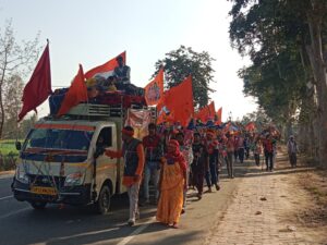 सड़क से महादेवा मंदिर की ओर जाता काँवरियों का जत्था