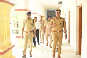 पत्रकार राघवेन्द्र मिश्रा बाराबंकी।उप-निरीक्षक भर्ती परीक्षा 2025 को निष्पक्ष, पारदर्शी और शांतिपूर्ण ढंग से सम्पन्न कराने के उद्देश्य से लखनऊ जोन के अपर पुलिस महानिदेशक ने जनपद बाराबंकी के विभिन्न परीक्षा केन्द्रों का निरीक्षण किया। इस दौरान उन्होंने पीएम श्री राजकीय इंटर कॉलेज, बाराबंकी सहित अन्य परीक्षा केन्द्रों का भ्रमण कर सुरक्षा व्यवस्था, अभ्यर्थियों की जांच प्रक्रिया और व्यवस्थाओं का जायजा लिया। निरीक्षण के दौरान पुलिस और प्रशासनिक अधिकारियों को निर्देश दिया गया कि परीक्षा पूरी तरह पारदर्शी और शांतिपूर्ण माहौल में कराई जाए। किसी भी प्रकार की अनियमितता या अव्यवस्था को रोकने के लिए पर्याप्त पुलिस बल तैनात रहे तथा प्रवेश द्वार पर सघन चेकिंग सुनिश्चित की जाए।