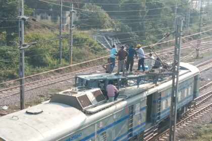 पुल से रेलवे ट्रैक पर गिरे डम्पर हादसे के बाद जागा रेलवे विभाग शुरू हुआ डिवाइडर बनाने का कार्य