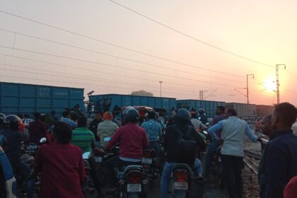 केसरीपुर क्रॉसिंग का गेट बंद करके लाइन पर डाली गई गिट्टियां एक घण्टा आवागमन रहा बाधित