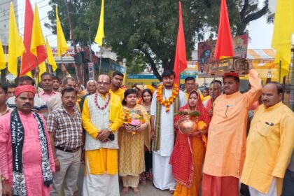 नगरपंचायत में निकाली गई भव्य कलश यात्रा कस्बावासियों ने पुष्प वर्षा कर किया स्वागत